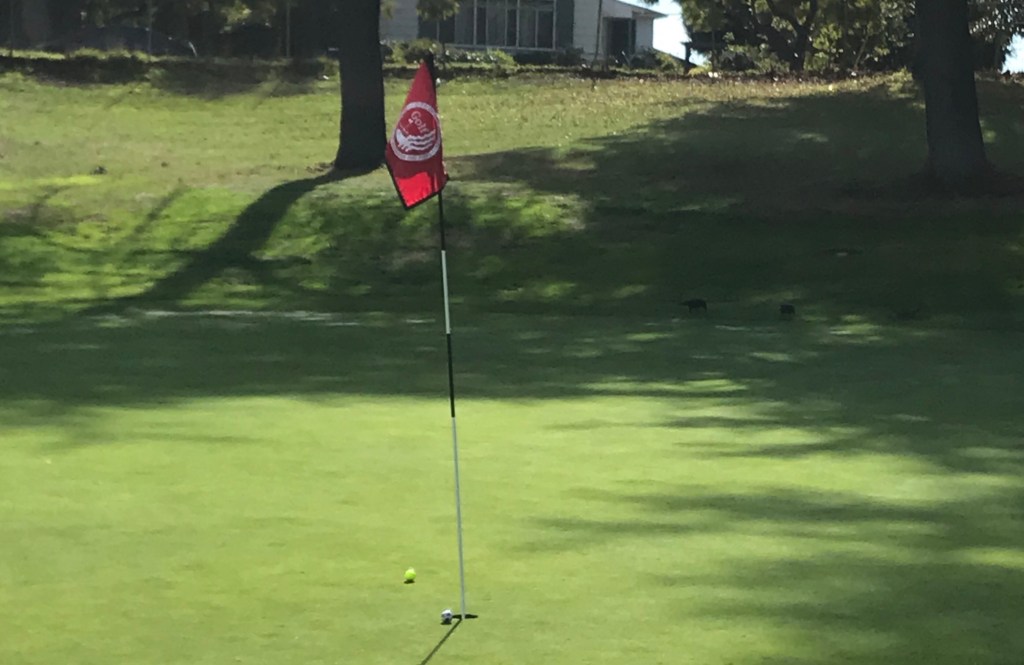 I made putts at least three times after adjusting my stances as l learned from John. Had several great drivers. And this 60 yard wedge shot, a red dot soccor ball right next to the hole. Every golfer knows the feeling.