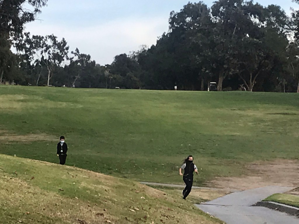 David started golfing one month ago because of LA city’s same household members in a group rule. The LA city stupid restriction has been lifted in less than two weeks. Now I can book as a single player as I used to. But I take him to a golf course twice a week. My husband doesn’t feel comfortable playing with strangers, so now we take our kids to the course to make a foursome. Good activities for kids during this quarantine.