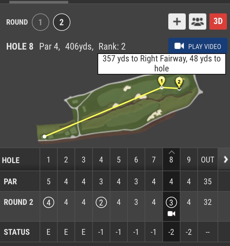 You can’t see fairway at the 18th tee box. Once Bryson DeChambeau climbed the hill and found out his ball was on the fairway, he delightly said “Yeah, Fairway!” and made a birdie. His caddie and I only heard that, but somehow that was very impressive to me. He missed all fairways for the first 8 holes (he started back9) and that was his first driver shot on fairway by far.